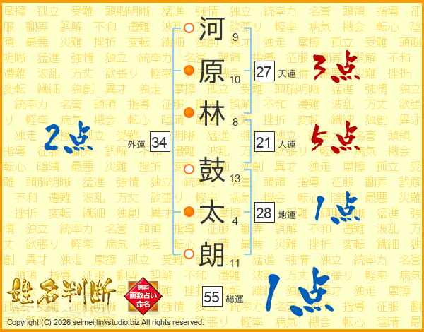 河原林鼓太朗さんの天運は27画の3点!