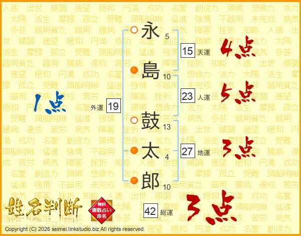 永島鼓太郎さんの天運は15画の4点!