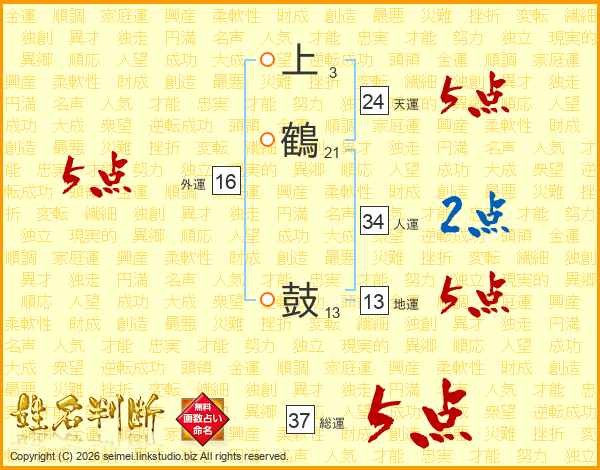 上鶴鼓さんの総運は37画の5点!