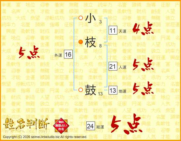 小枝鼓さんの総運は24画の5点!