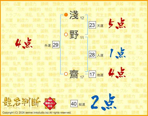 淺野齋さんの総運は40画の2点!