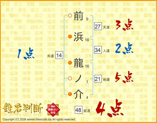 前浜龍ノ介さんの総運は48画の4点!