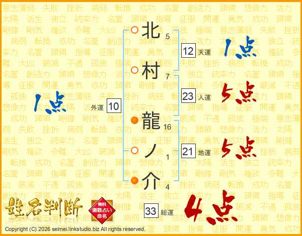 北村龍ノ介さんの総運は33画の4点!