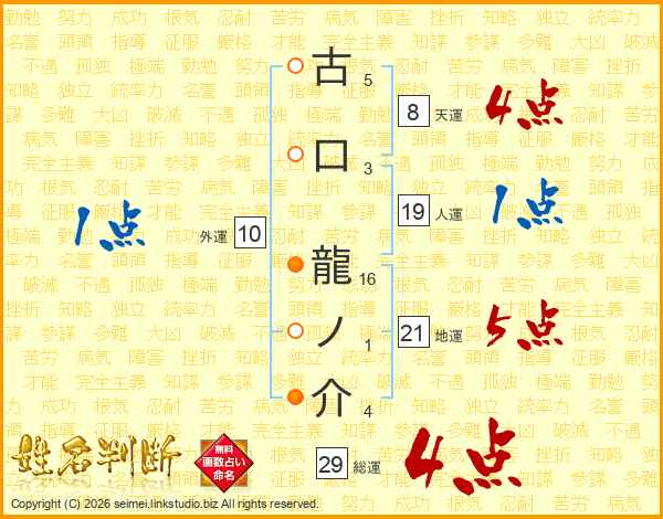 古口龍ノ介さんの総運は29画の4点!