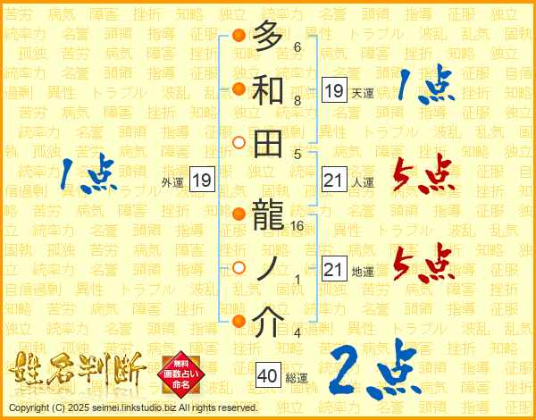 多(6画)和(8画)田(5画) 龍(16画)ノ(1画)介(4画)