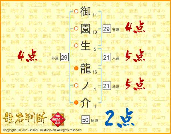 御園生龍ノ介さんの総運は50画の2点!