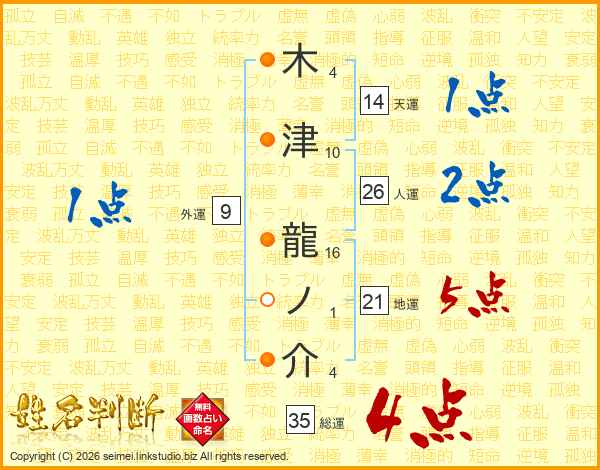 木津龍ノ介さんの総運は35画の4点!