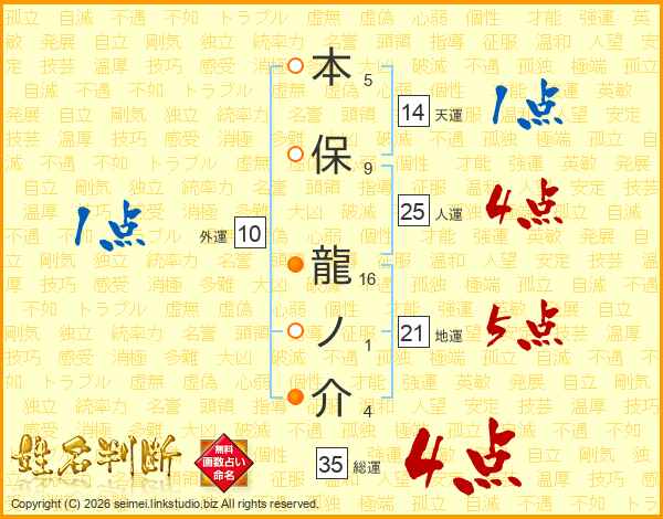 本(5画)保(9画) 龍(16画)ノ(1画)介(4画)