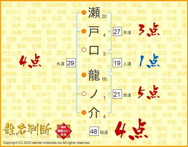 瀬戸口龍ノ介さんの総運は48画の4点!