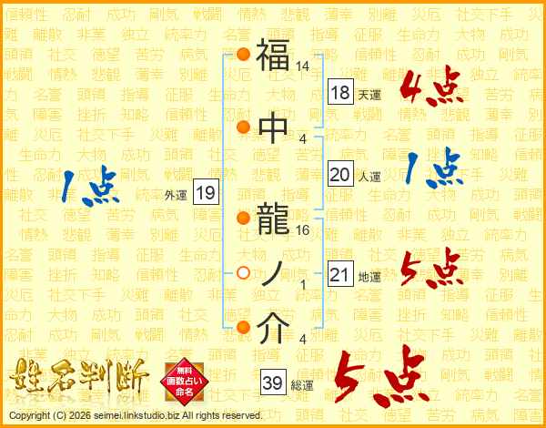福中龍ノ介さんの総運は39画の5点!