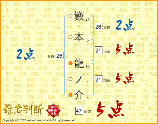 籔本龍ノ介さんの総運は47画の5点!