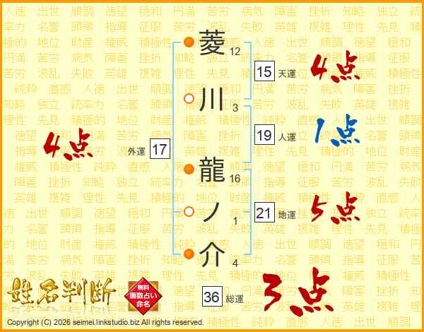 菱川龍ノ介さんの総運は36画の3点!