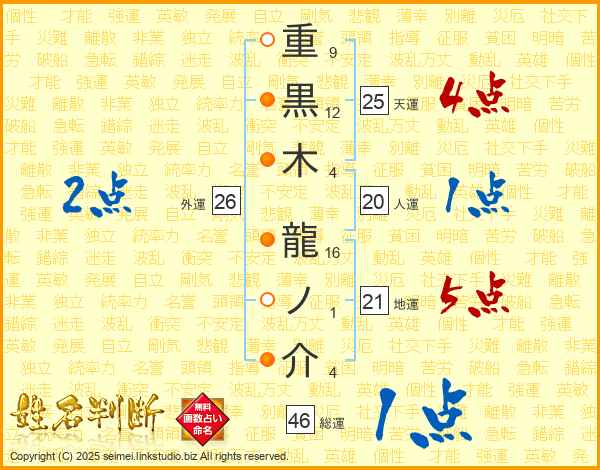 重黒木龍ノ介さんの総運は46画の1点!