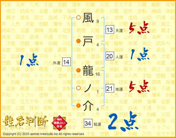 風(9画)戸(4画) 龍(16画)ノ(1画)介(4画)