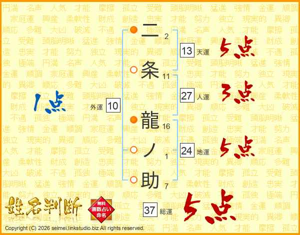 二条龍ノ助さんの総運は37画の5点!