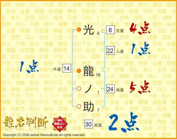 光龍ノ助さんの総運は30画の2点!