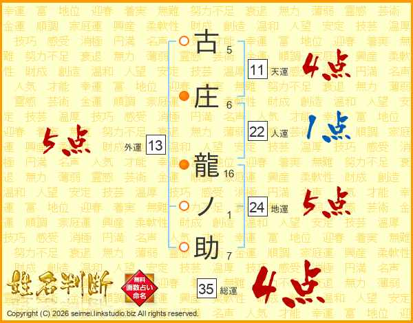 古庄龍ノ助さんの総運は35画の4点!