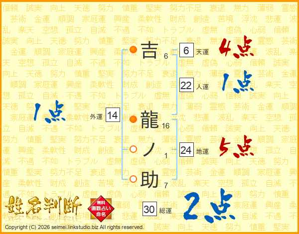 吉龍ノ助さんの総運は30画の2点!