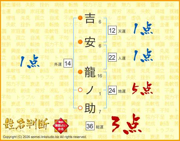 吉安龍ノ助さんの総運は36画の3点!