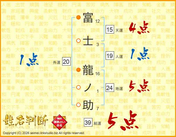 富士龍ノ助さんの総運は39画の5点!