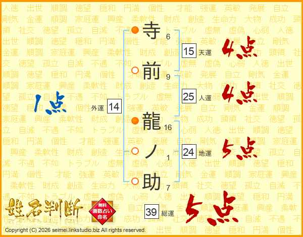 寺前龍ノ助さんの総運は39画の5点!