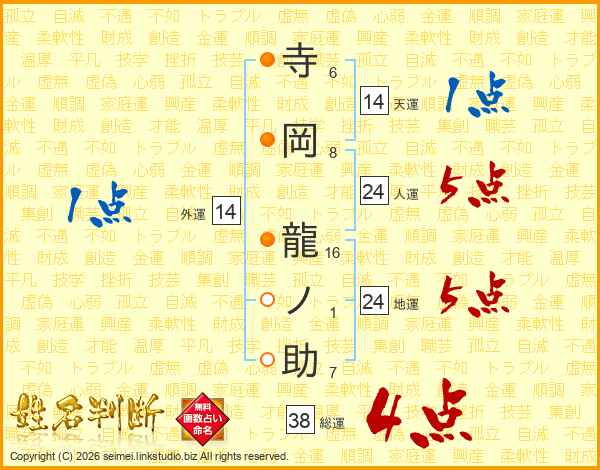 寺岡龍ノ助さんの総運は38画の4点!