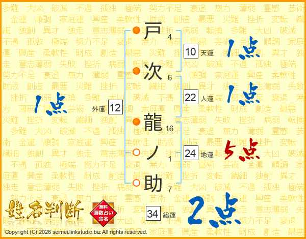 戸次龍ノ助さんの総運は34画の2点!