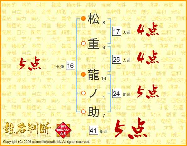 松重龍ノ助さんの総運は41画の5点!
