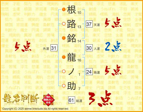 根路銘龍ノ助さんの総運は61画の3点!