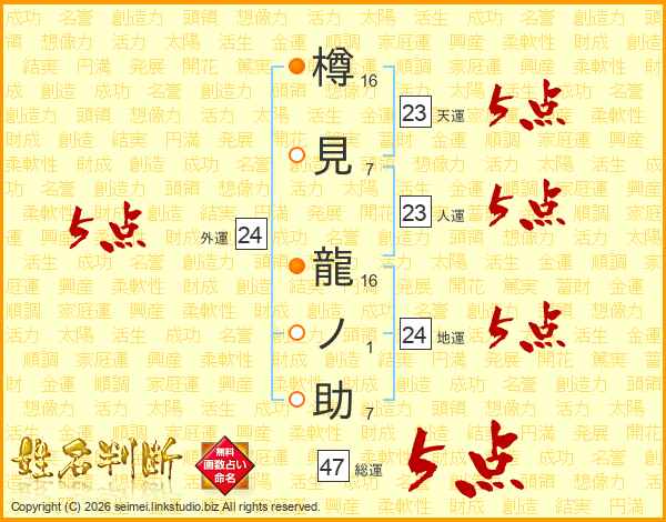 樽見龍ノ助さんの総運は47画の5点!