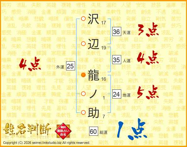 沢辺龍ノ助さんの総運は60画の1点!