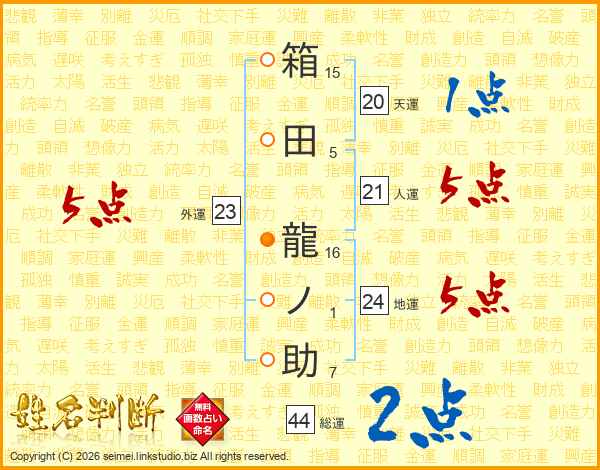 箱田龍ノ助さんの総運は44画の2点!