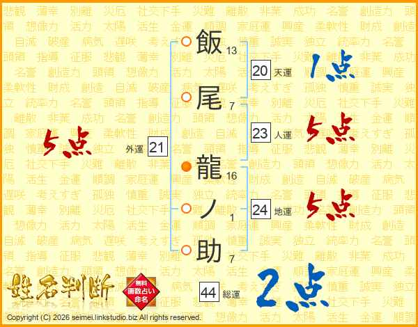 飯尾龍ノ助さんの総運は44画の2点!