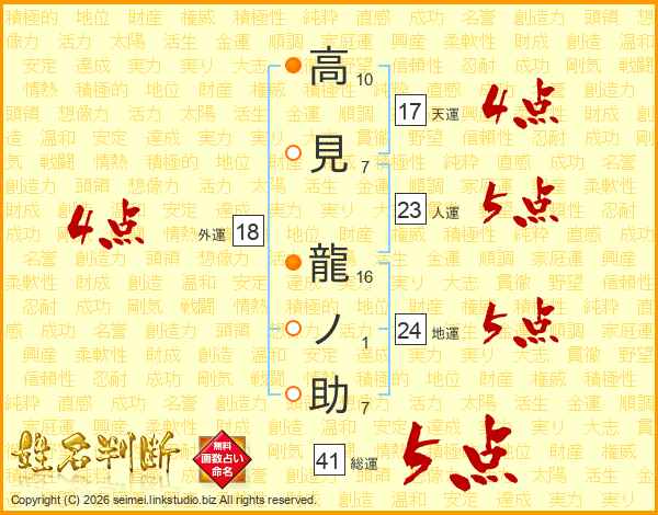 高見龍ノ助さんの総運は41画の5点!