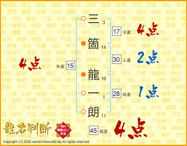 三(3画)箇(14画) 龍(16画)一(1画)朗(11画)