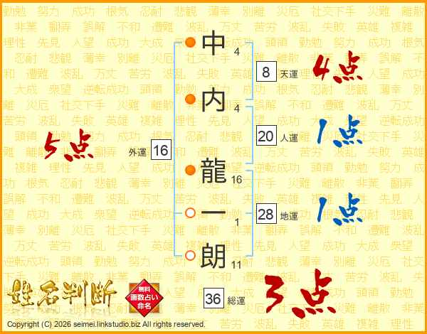 中内龍一朗さんの外運は16画の5点!
