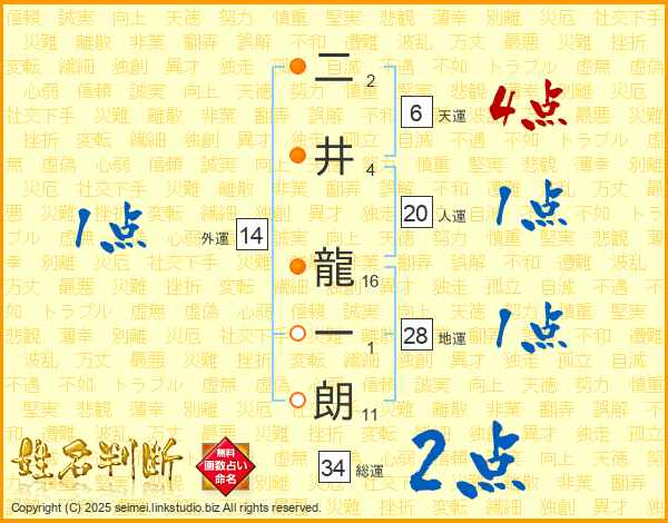 二井龍一朗さんの総運は34画の2点!