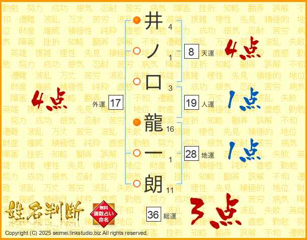 井ノ口龍一朗さんの外運は17画の4点!