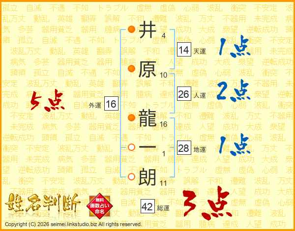 井原龍一朗さんの総運は42画の3点!