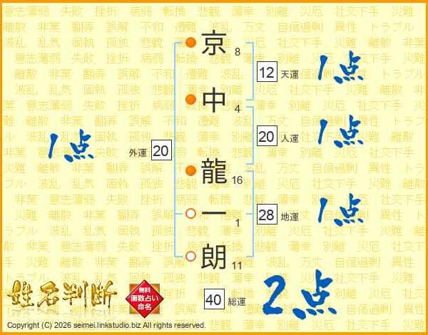 京中龍一朗さんの総運は40画の2点!