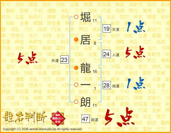 堀居龍一朗さんの外運は23画の5点!