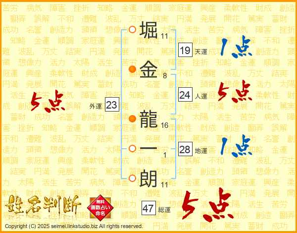 堀金龍一朗さんの人運は24画の5点!