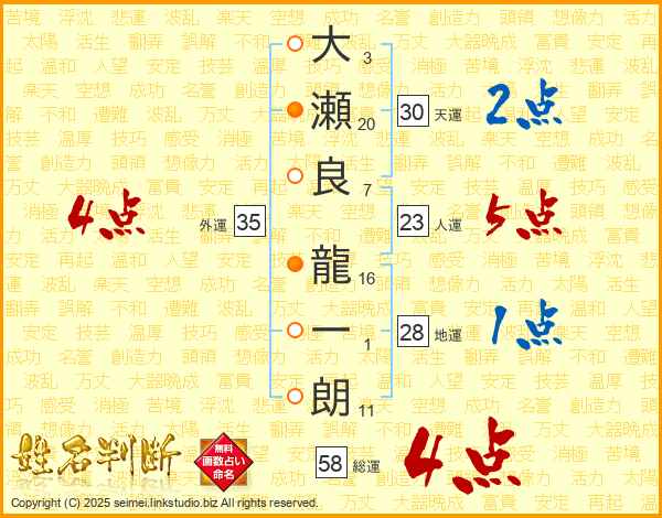 大瀬良龍一朗さんの外運は35画の4点!
