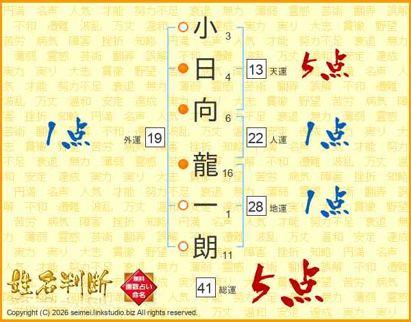 小(3画)日(4画)向(6画) 龍(16画)一(1画)朗(11画)