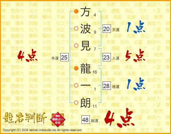 方波見龍一朗さんの総運は48画の4点!