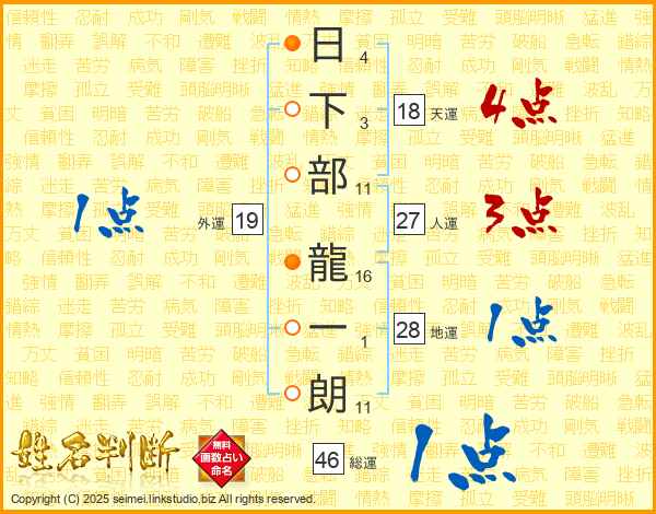 日下部龍一朗さんの天運は18画の4点!