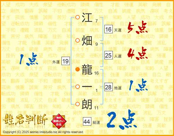 江畑龍一朗さんの人運は25画の4点!