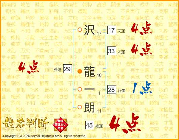 沢龍一朗さんの総運は45画の4点!