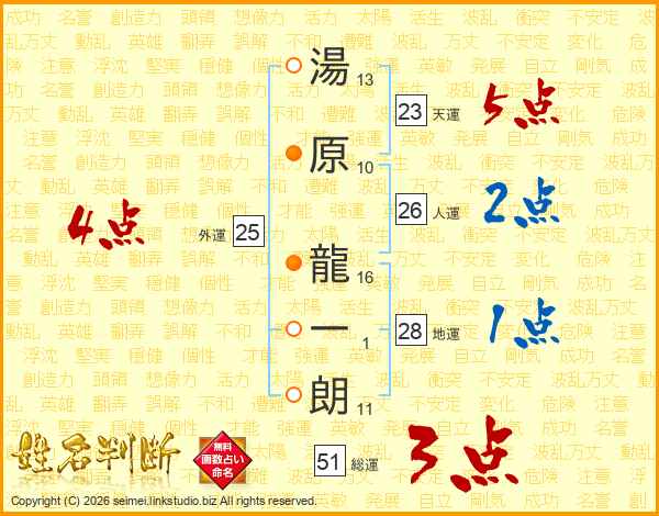 湯原龍一朗さんの天運は23画の5点!
