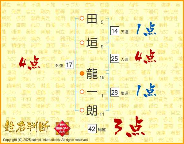 田垣龍一朗さんの人運は25画の4点!